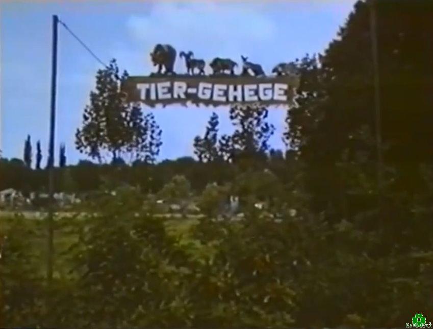 Een foto uit de begintijd van Dierentuin Kleef. De dierentuin is zeer overzichtelijk, met veel groen en struikgewas. Zouden dit de eerste dieren zijn geweest die hier tentoongesteld werden en die hier op het ingangsbord te zien zijn? Wie weet?